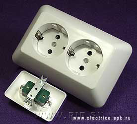 Розетка скр. пров. 2-х местн.РС16-007 с заз. со шторк. /Прима/